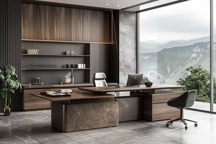 طراحی دفتر وکالت مدرن مدیریتی با میز وکیل خاص