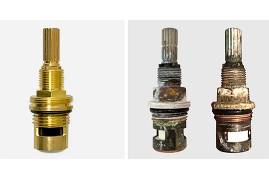 وقتی کارتریج قدیمی را بیرون می‌آوریم، معمولاً نشانه‌های خرابی کاملا قابل‌مشاهده‌اند: لقی بیش‌ازحد، ترک‌خوردگی، گیرکردن سوپاپ‌ها یا رسوب زیاد. بهتر است کارتریج نو را کنار آن بگذاریم تا مطمئن شویم مدل و سایز یکسانی انتخاب کرده‌ایم.