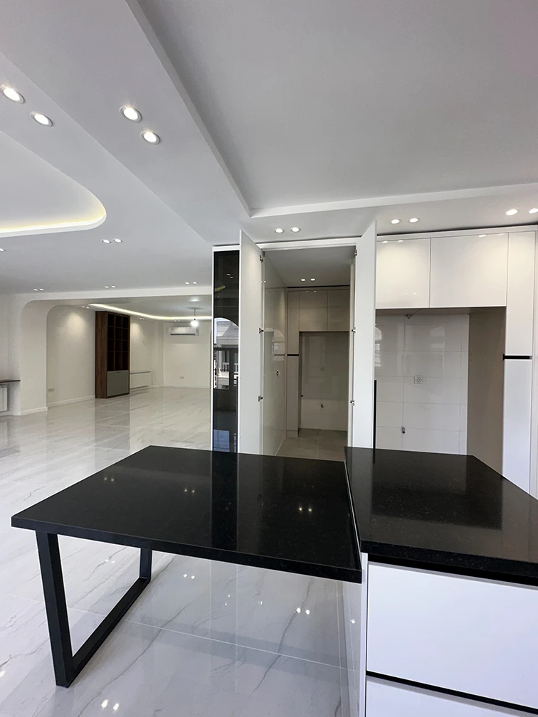 اختصاصیسازی این واحد ۲۵۰ متری سبک جدیدی از بازسازی خانه به حساب میآید.واحدی که در یک ساختمان ۶ طبقه در حال ساخت و در زمان اجرای اسکلت پیشخرید شده بود، به یک واحد مجلل با سه اتاقخواب و امکانات فراوان تبدیل شد.